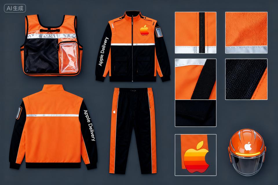 一开始,我们先用星宇橙设计一套苹果牌外卖骑士服,这套衣服可能会让本来就卷的外卖赛道更加拥挤。