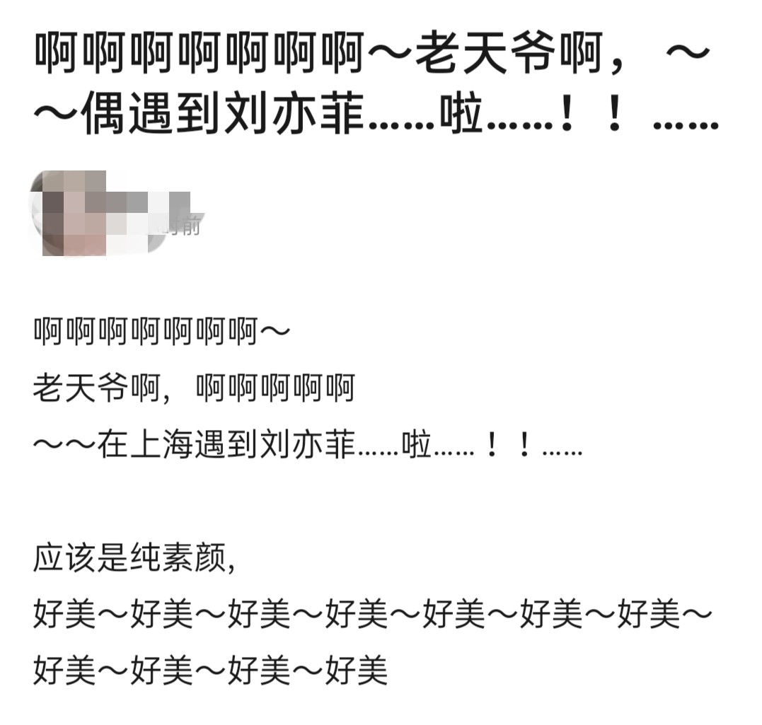11月19日下午,有网友在某论坛上发帖,晒出自己偶遇天仙刘亦菲的照片,刘亦菲的超好状态也是受到了网友们的热议。