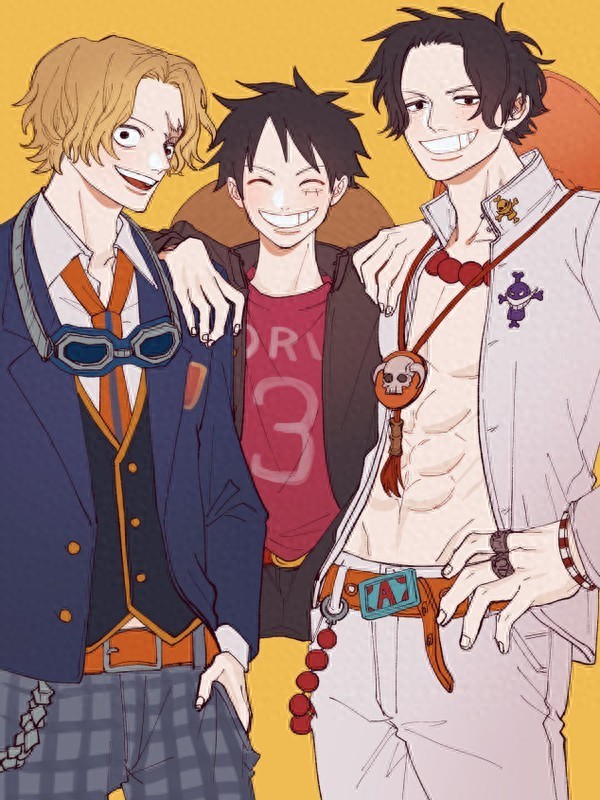 第一张是ASL的集体照,三个人都挂着爽朗的笑容,艾斯的衣服上还有白胡子海贼团的海贼标志,这个细节做得很感人。