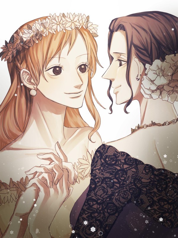 娜美和罗宾的这个婚纱照是根据海贼王的那个联动婚纱画出来的,草帽团的两大女神穿上婚纱都极为优雅。