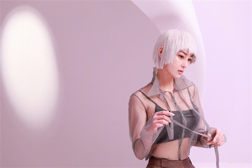 在另一张照片中,她换上白发造型,身穿灰色吊带衫,既酷帅又性感。