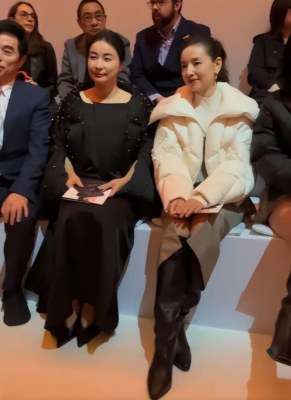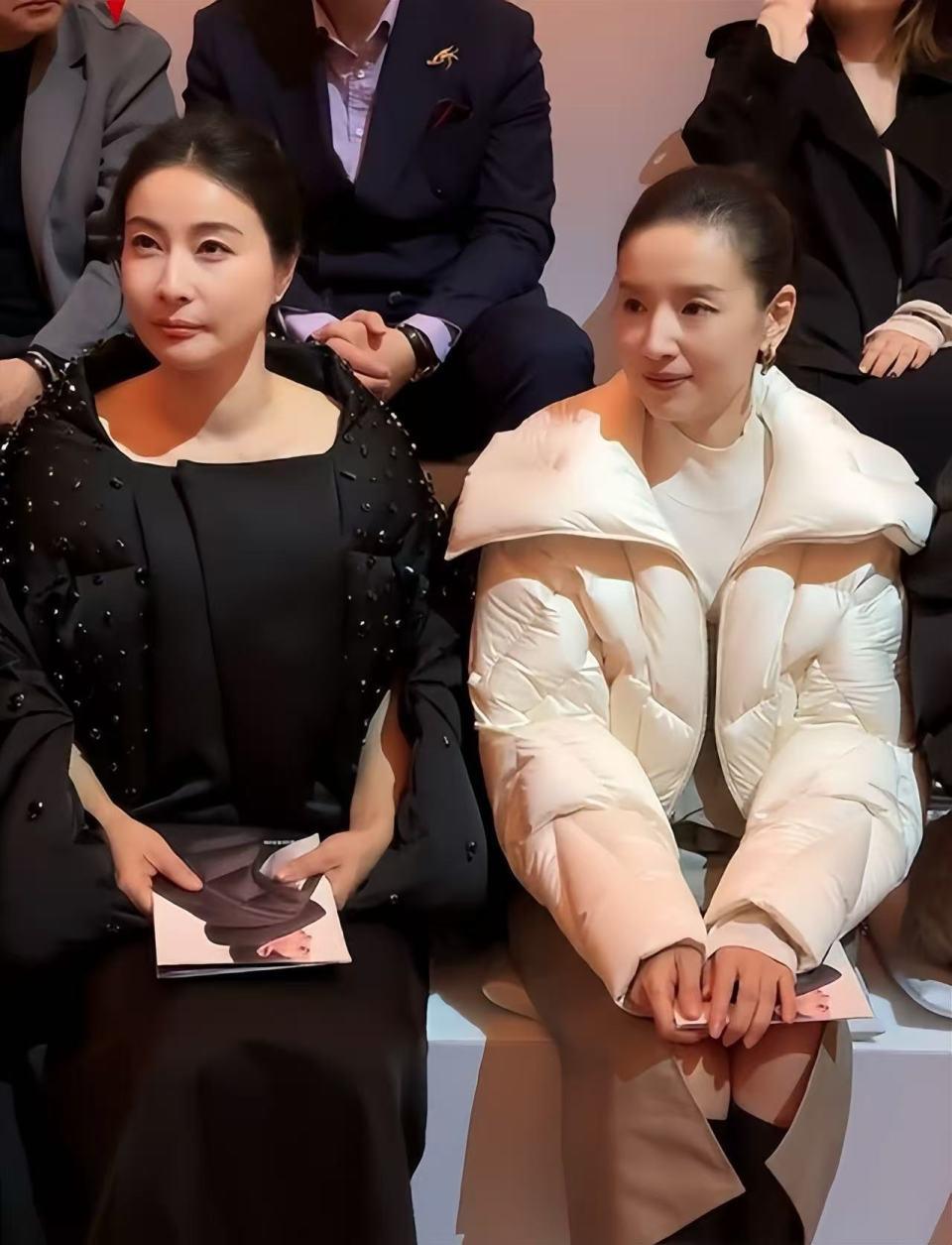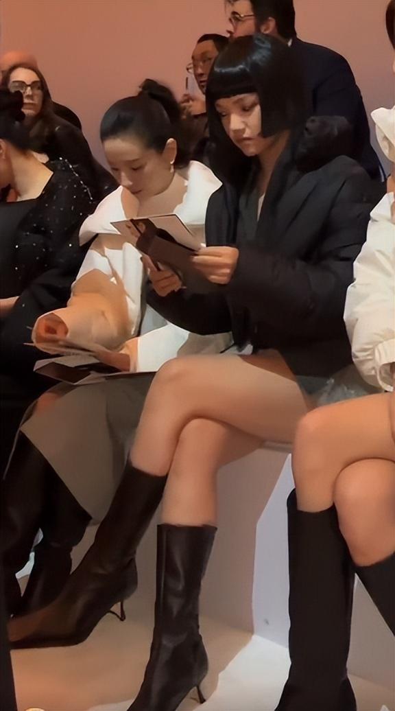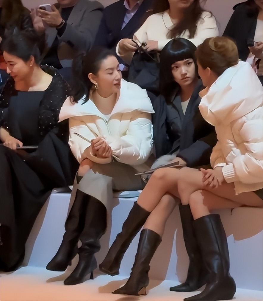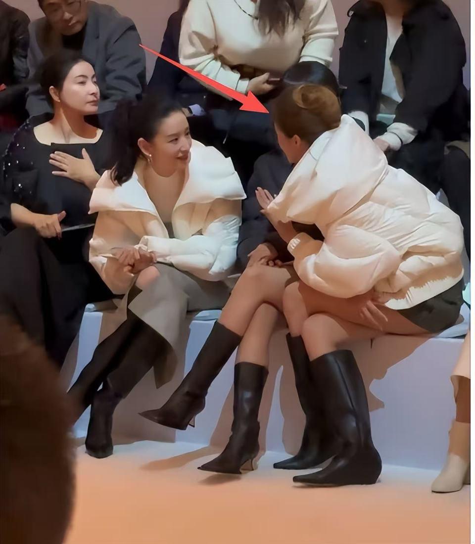 这不,在秀场看到了同行董洁,立马上前献殷勤去讨教 " 挣钱 " 的方法,整个看秀过程都在董洁交头接耳。