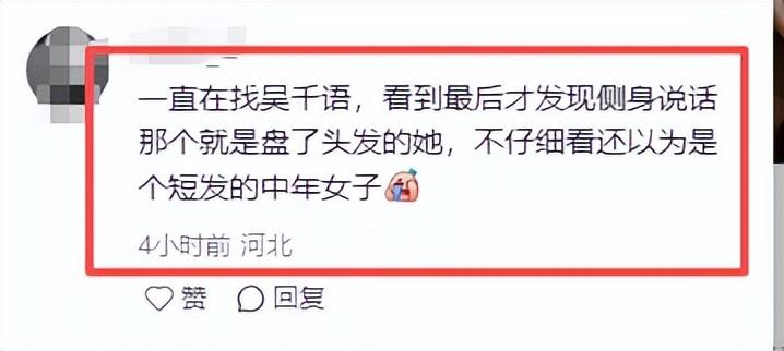 有的网友忍不住调侃:差点没能认出这是吴千语,还以为是短发的中年妇女。