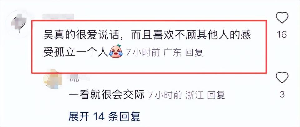 有网友实在忍不住了:吴千语咋那么爱说话,完全不顾及别人感受孤立一个人,好有心机。