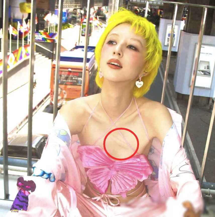 这次的大胆举动,更像是一次自我表达的尝试。她身穿粉色吊带装,勇敢地展示自己胸口的伤痕,似乎在向外界诉说着一段不为人知的故事。她的行为引发了无数的猜测和讨论,但真相究竟如何,只有她自己清楚。