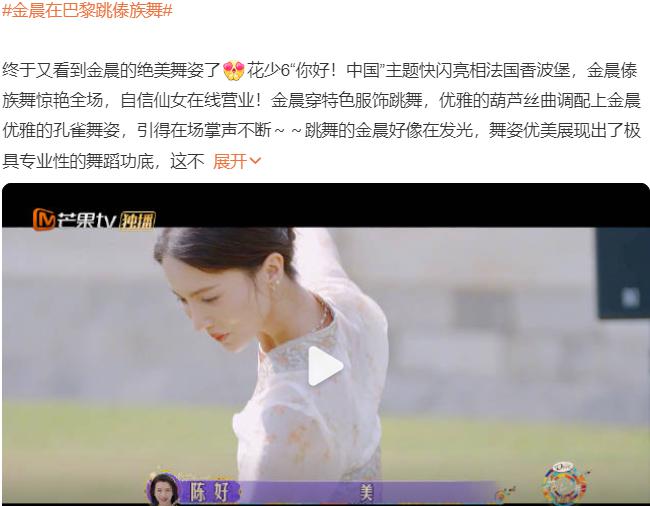 金晨在花少旅途,一支傣族舞,在巴黎惊艳了观众。