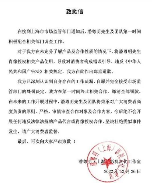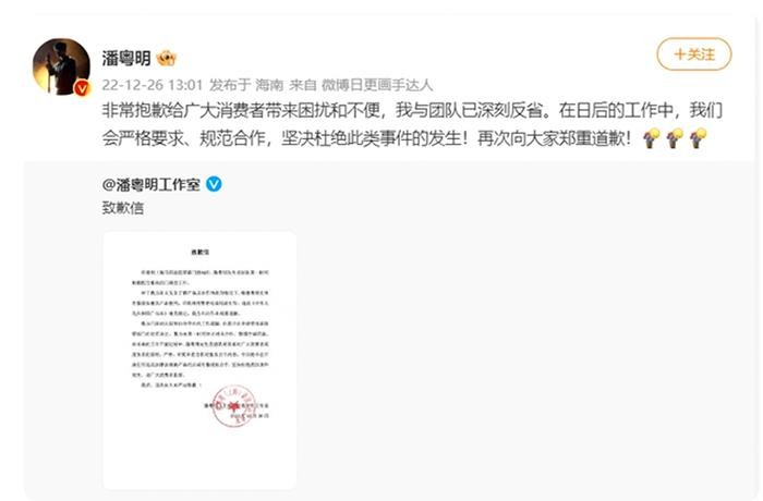 潘粤明发文道歉反省,明星代言要擦亮眼啊