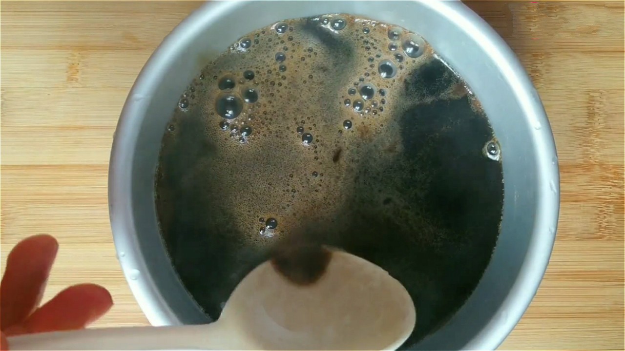 4.将煮好放入模具放凉,拿一勺去掉上面的浮沫。