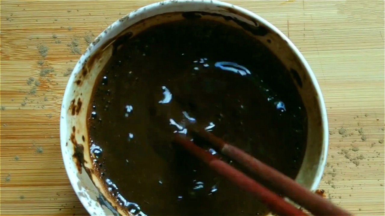 1.拿一碗放凉水,倒入准备好的黑凉粉,搅拌均匀。