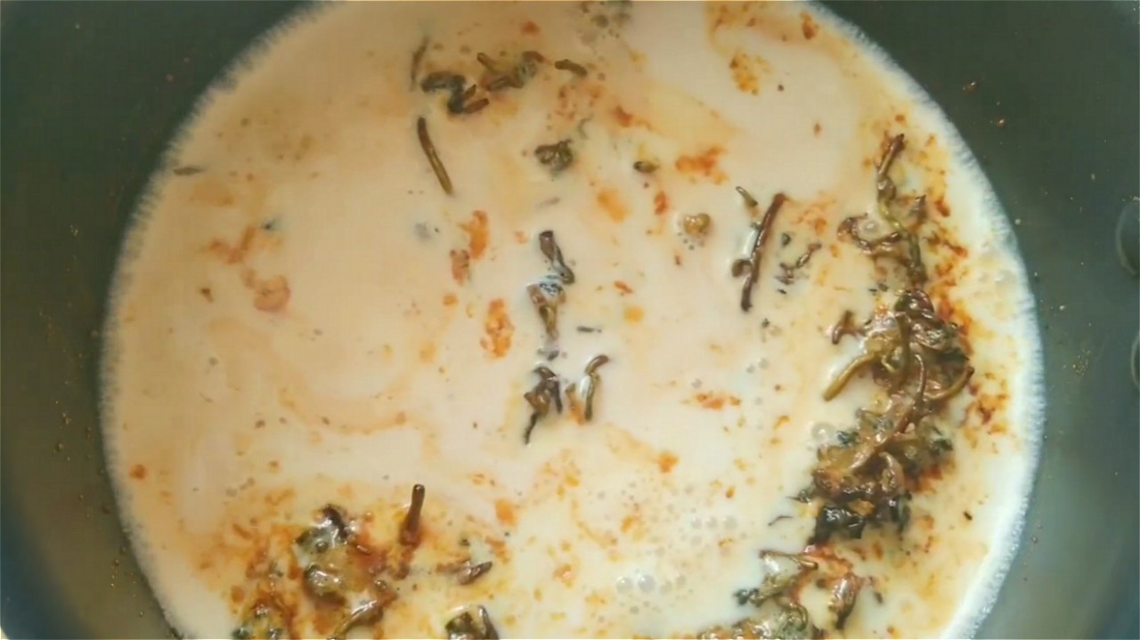 9.煮的时候适当搅拌几下使茶叶更容易煮开,等煮开之后就可以关火倒出来了。