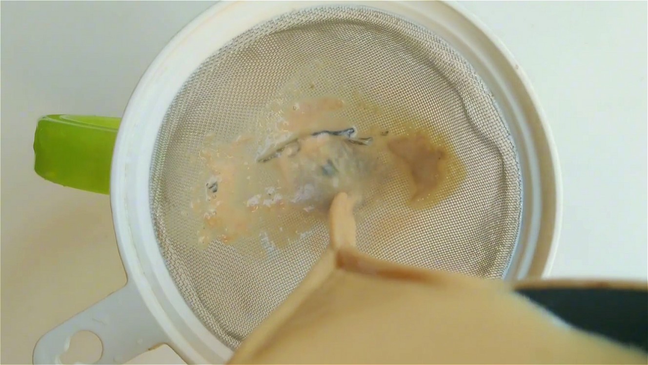 10.用滤网过滤掉茶叶,奶茶部分完成。