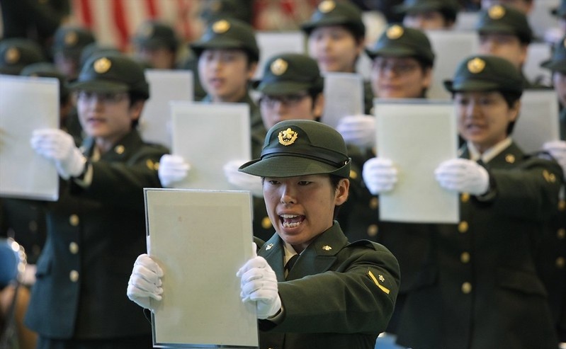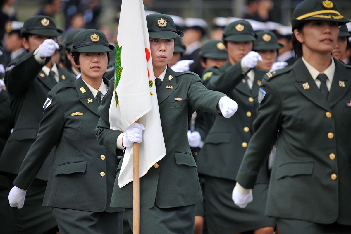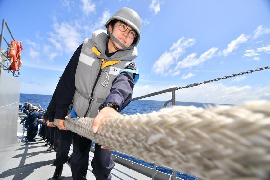 英法美等国女权运动的兴起,席卷全球,男女平等是大趋势,日本国内也随着国际大环境的变化而变化。近年来生育观念的转变,少子化也使得日本自卫队困惑不已,招募倍感压力,所以招募女性入伍是必然,而且有扩大比例的趋势,原先女性主要安排在地勤,医务,通讯等岗位,前几年出现了直升机女飞行员,现在更多一线岗位也已向女性开放,如这两年日本产生了首位潜艇女水兵,时年26岁,又出现了首位战斗机女飞行员,驾驶F-15,前年 DDG175妙高号出现首任女舰长大谷三穗,时年48岁,隶属海自第3护卫群第7护卫队。还有东良子出任横须贺基地第一护卫队司令。