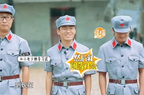 “我从小在少林寺练武,然后闯荡江湖直到现在。”这番话让站在他身边的邹市明忍俊不禁,“噗呲”一声笑了出来。