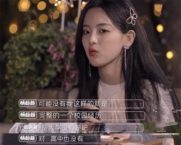 尽管初中学历让杨超越受到了不少争议,但她从不掩饰自己学历低的事实。当别人在综艺节目里问她:“没有大学经历是吧?”