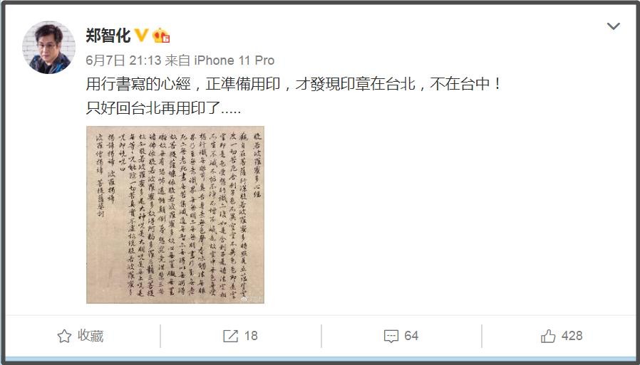 的确,从他在社交平台上分享的内容来看,他仍坚持着艺术家、思想家的梦想,几乎每周都会上传自己的字画还有对生活的感想,即便到了五十多岁也没停止学习。