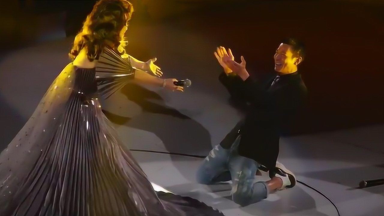 之后两人同台合唱时,周润发更是激动不已,为表敬意,他竟直接在台上跪下对小凤姐行了跪拜礼。