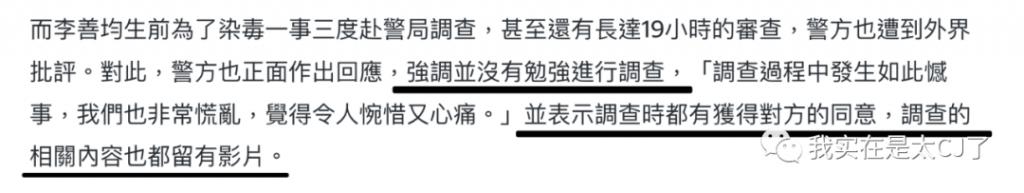 警方到底是怎么调查李善均的同样是问题,因为检查结果已经呈阴性了还要高强度审讯那么久,出来没多久人就死了,不怪民众怀疑是不是用了高压手段。所以他们在交代李善均去世确切信息时特意强调 " 所有的调查都是在李善均同意之下进行,没有强迫 "。