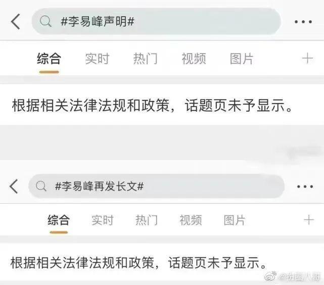 李易峰本人、工作室微博、抖音全网声明全都无法查看。