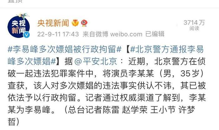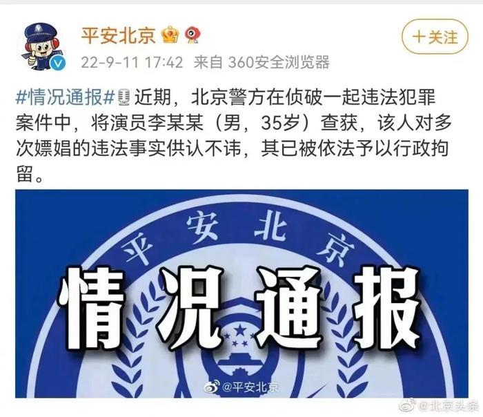 他们通报“李某某”多次嫖 娼,实际上这个李某某,就是李易峰。