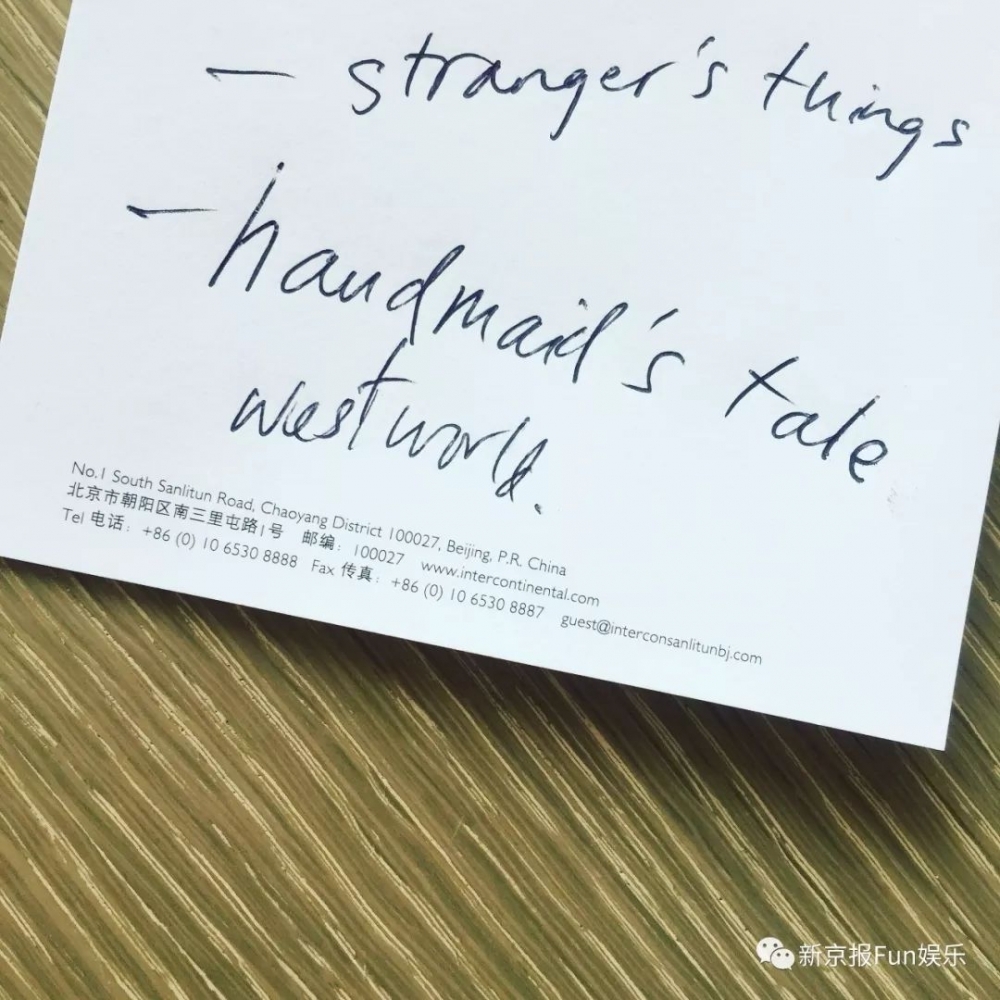 陈慧琳亲手写下最近看的剧新京报:有新的演唱会的计划吗?陈慧琳:有,赶紧出一些新歌就有演唱会了。 福利:陈慧琳签名照 3张参与方式: 在这条推送下面留言,写下你想对她说的话~我们会选择优秀的留言上精选,截止到7月31日12点,留言点赞前3的亲将会分别获得签名一份。 ps:7月31日推送中公布中奖名单,福利不包邮