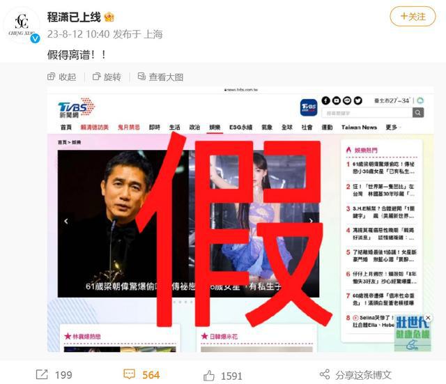 网传程潇秘恋 61 岁梁朝伟还诞下私生子,程潇方回应:假得离谱