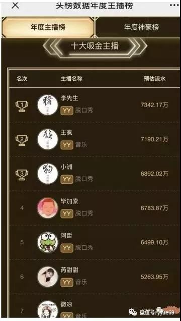 YY十大主播收入榜单位出炉:阿哲第五,老李登顶