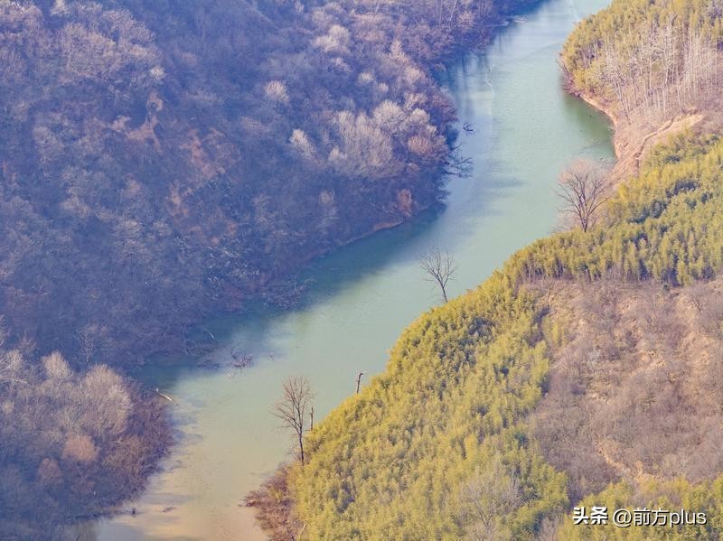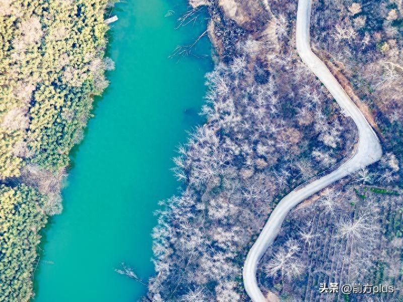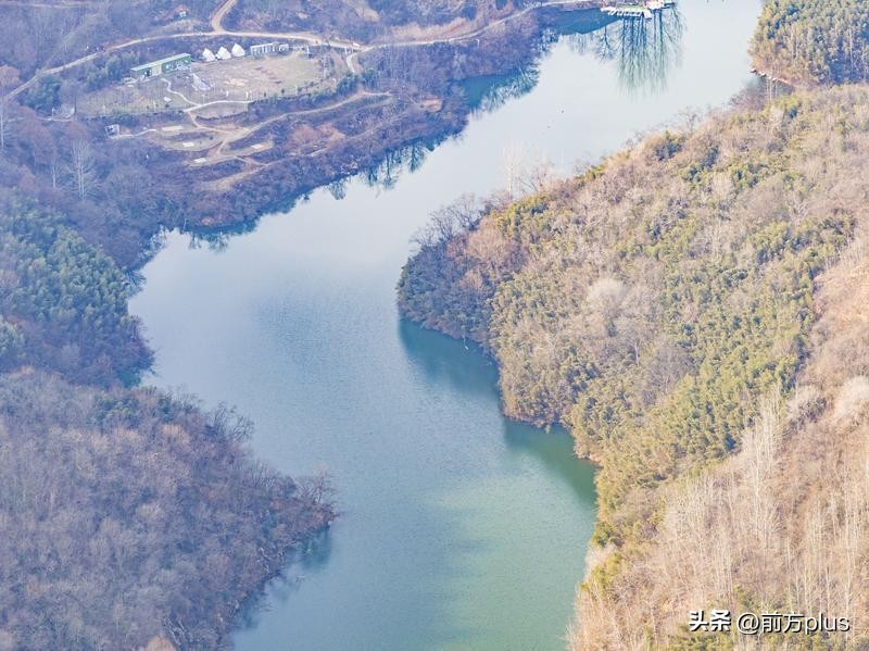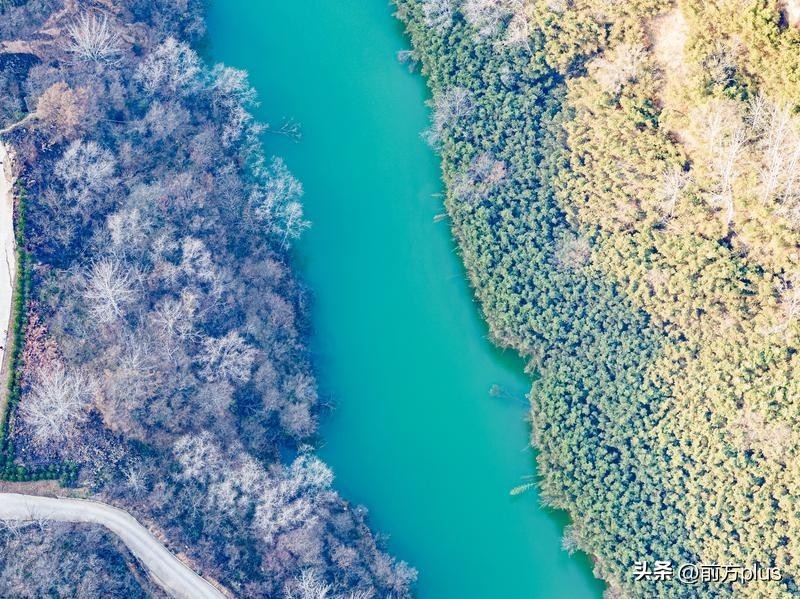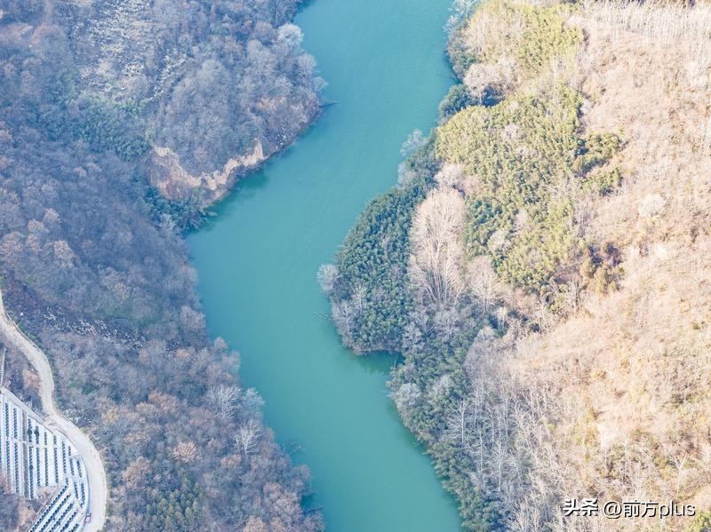 12月26日,西安天气晴好,从空中俯瞰鲸鱼沟景区,景区周边植被茂密,碧波荡漾,宛如一幅美丽的冬日画卷。