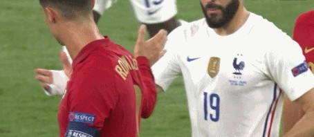 在本泽马打进点球后,作为对手的C罗非常大度地上前与他击掌庆贺。两人在皇马时就关系非常好,在这场事关出线名额的比赛中,C罗仍然显得十分大度,为自己一直以来的好友送上了祝福。
