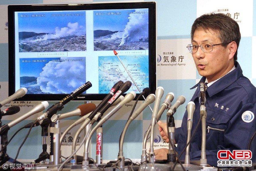 当地时间2018年4月19日,日本九州宫崎县,位于雾岛山脉的火山硫黄山当天下午发生喷发。目前尚无人员伤亡或财产损失的报告。
