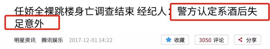 就在大伙猜测纷纷时,警方给出了准确回应,表示任娇是因为过量饮酒才会出现“坠楼意外”,言外之意当然就是和其他人无关。