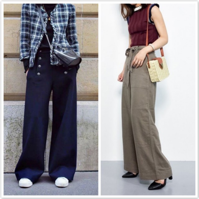 (2)阔腿裤尽量选择九分款的长度,特别是对小个子女性来说,过长的阔腿裤搭配小短靴,稍有不当就会非常显腿粗。