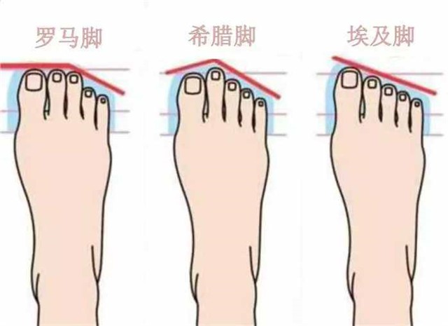 第三个穿搭技巧,就是要考虑到个人的脚型,每个人脚型不一样,所以在选择鞋子上也会有所区别,穿的时尚很重要,但穿的舒服同样很重要。简单来看,脚型分为罗马脚、希腊脚、埃及脚,主要取决于大拇指长度,大拇指与其他脚趾齐平,则为罗马脚;超过其他脚趾则为埃及脚;不及其他脚趾则为希腊脚。下面我们看看不同脚型适合哪些鞋子吧!