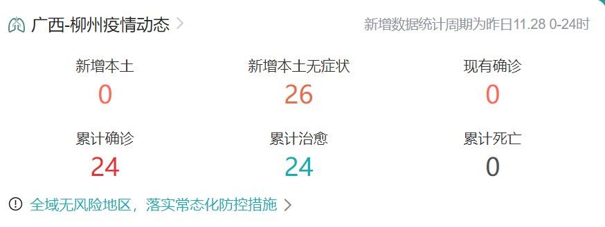 小编很好奇地查了下柳州的最新疫情,大数据显示,本土新增0,现在确诊0,2020年疫情以来的三年里,除无症状感染者外,柳州市到目前为之,全市累计确诊病例只有24例。除了本月20日以后新增加的本土无症状外,下半年竟无一例确诊病例,放眼全国简直是凤毛麟角,很是令人惊奇稀奇。