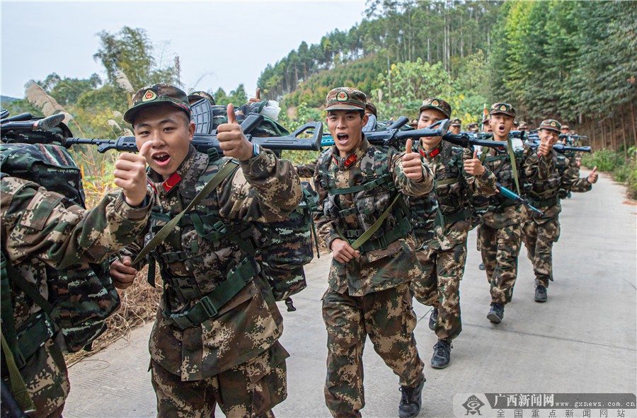 行军途中,新兵们士气高昂,动力十足。广西新闻网通讯员 孙立志 摄