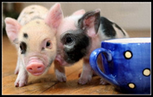这种小猪只有茶杯那么大,有塔姆沃思猪和格洛斯特郡花猪杂交而成。刚出生不久的茶杯猪比家猫还要娇小,差不多半斤重。