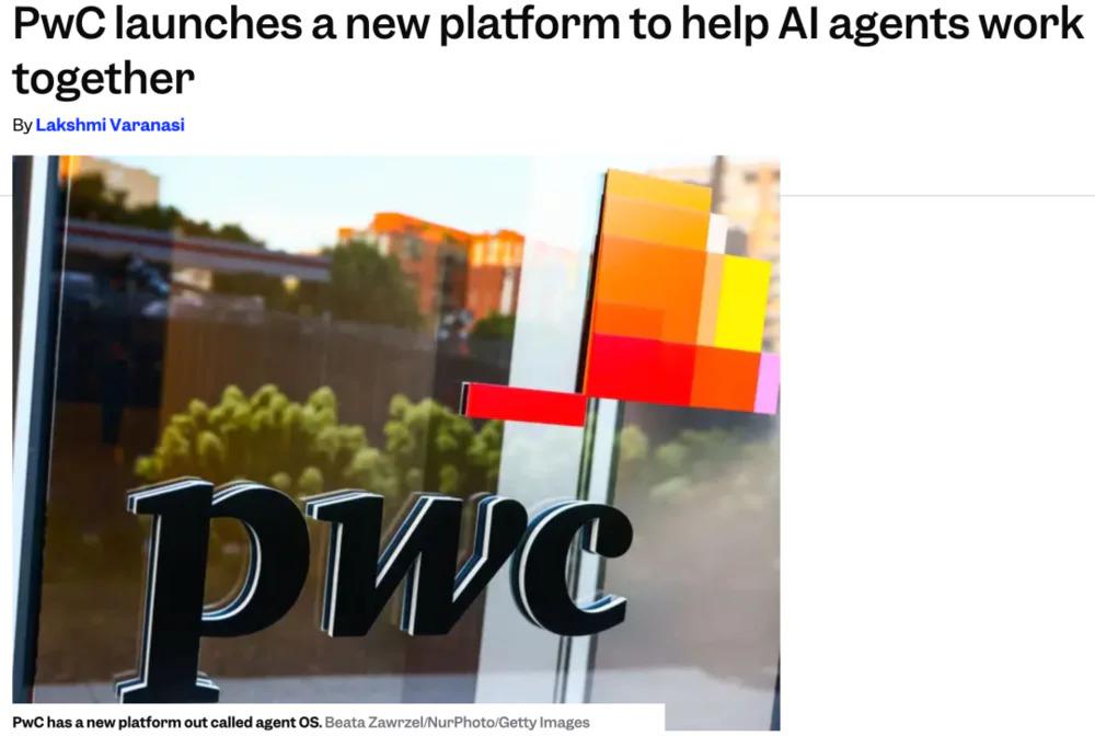 比如类似 PwC 发布了 "Agent OS",目标是让企业内部多个 AI 智能体可以沟通协作,而不是孤立运作。