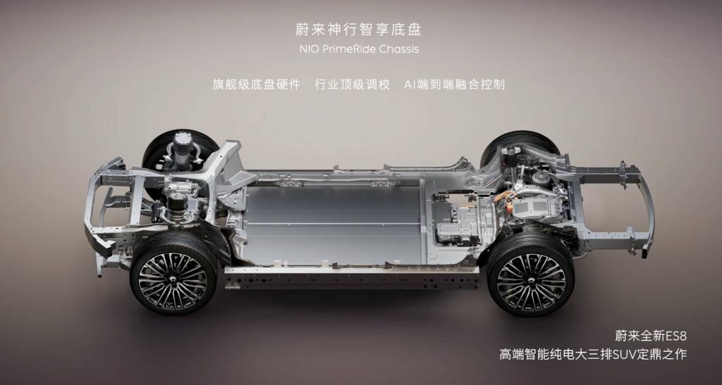 但硬件只是基础,真正让全新 ES8 的乘坐体验产生代差的,是它的智能底盘系统。这套系统由前后五连杆悬架、智能双腔空气悬架和新一代 CDC 减振器构成,而灵魂则是 AI 端到端底盘融合控制。系统能提前预判路况,指令悬架主动做出应对,让底盘从「被动响应」走向「主动预测」。