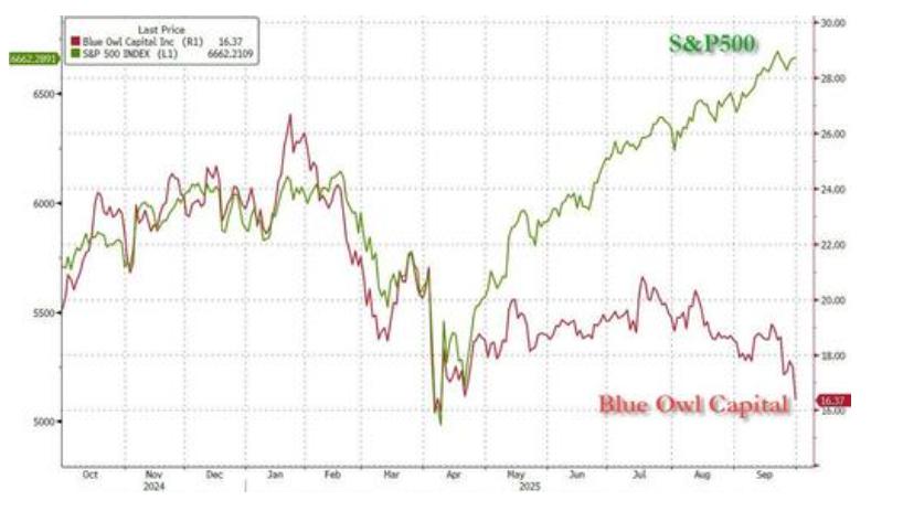 市场数据显示,全球最大的私募信贷管理公司之一黑石集团旗下的私募信贷基金 BXSL,其股价已跌至 2025 年新低,表现远远落后于标普 500 指数。另一家行业巨头 Blue Owl 的股价也同样岌岌可危。据彭博报道,Blue Owl 已经深度参与到 AI 领域的融资活动中。