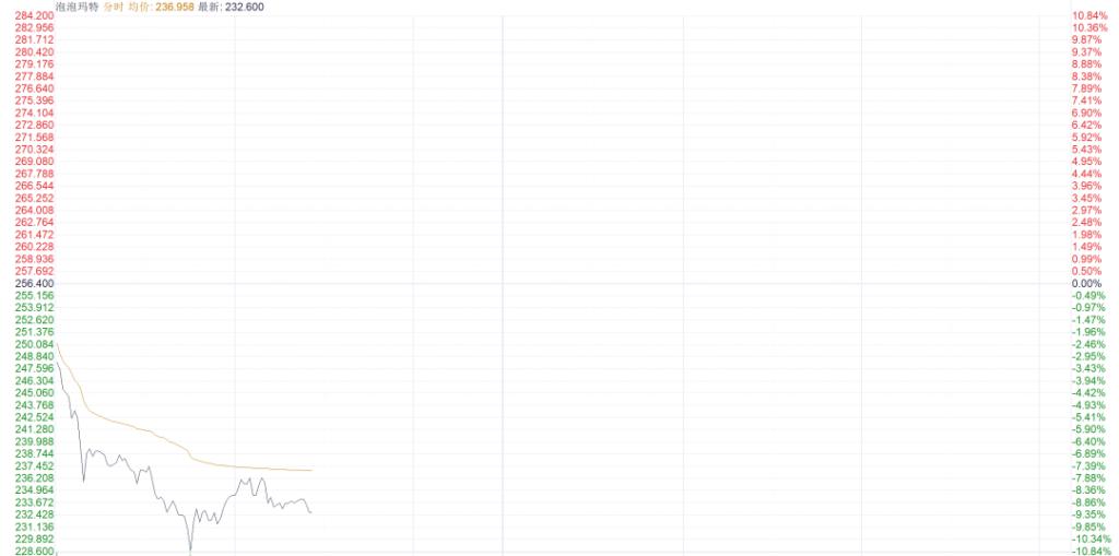 泡泡玛特 ( 09992.HK ) 在披露三季度经营业绩后,今日股价再度遭遇重挫。该股早盘的股价一度急泻至 228.60 港元,刷新 6 月以来低点;截至发稿,仍跌超 9%。