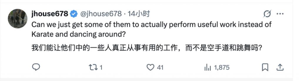 等下回再刷到 " 中国机器人又整新活儿 ",估计老外的第一反应都不是惊叹了。