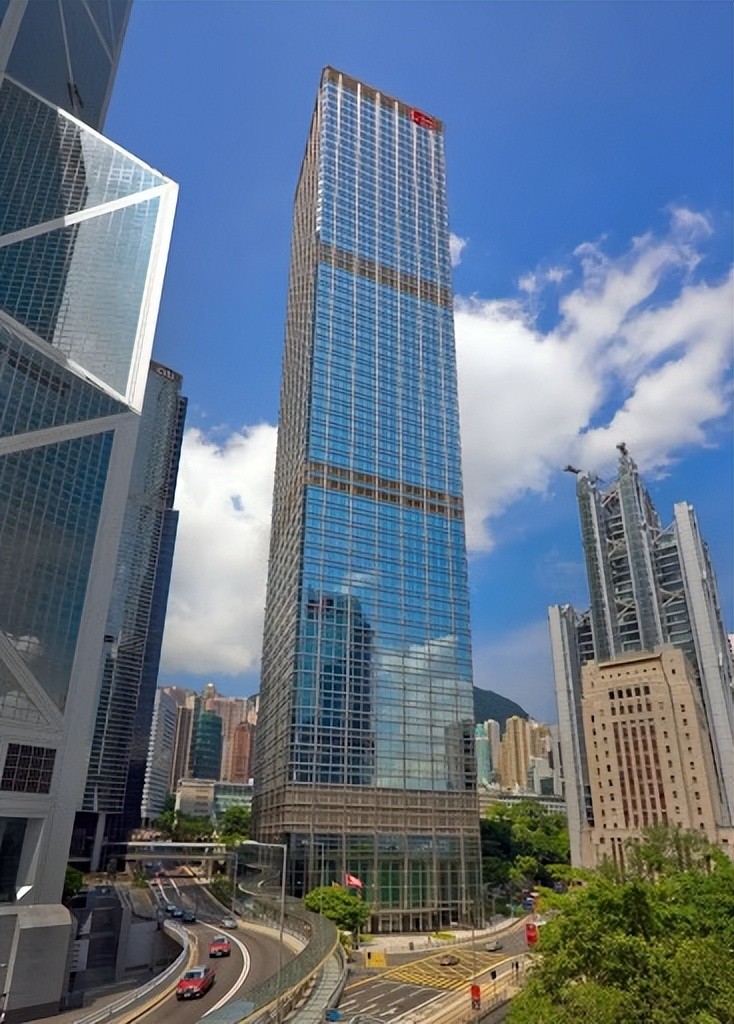 大楼选址是在香港的黄金地段中环,寸土寸金,左右两侧分别是中银大厦和汇丰银行总部大厦。