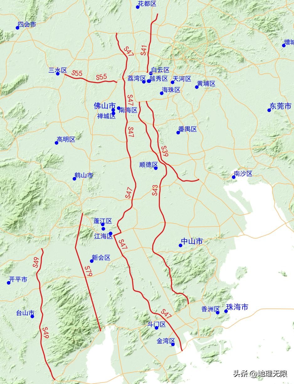 S47广佛江珠高速公路,连接广州市,佛山市,江门市,珠海市。