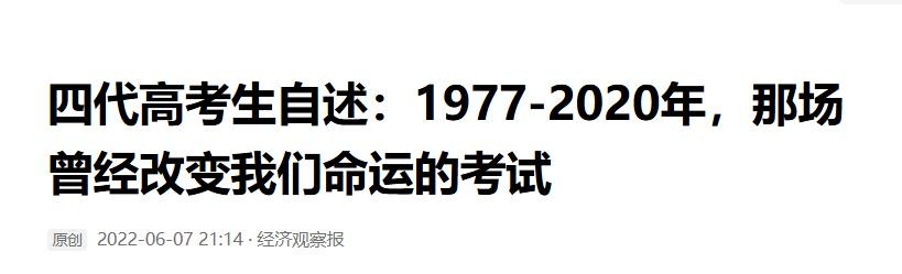 经济观察报:2022-06-07:四代高考生自述:1977-2020年,那场曾经改变我们命运的考试