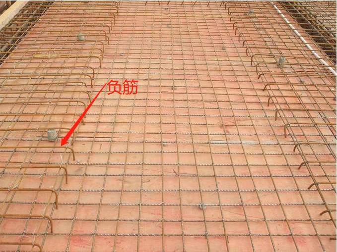 5、负筋:就是负弯矩钢筋,弯矩的定义是下部受拉为正,而梁板位置的上层钢筋在支座位置根据受力一般为上部受拉,也就是承受负弯矩,所以叫负弯矩钢筋,也称为支座负筋。