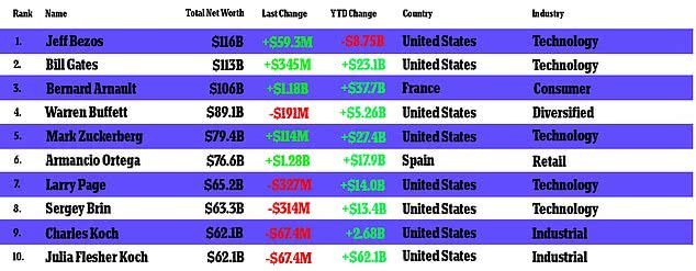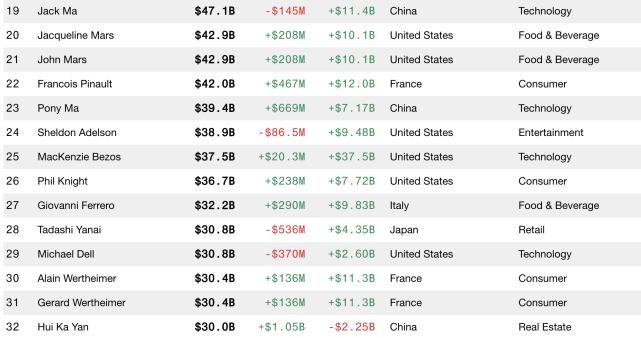 2019全球富豪榜出炉,贝佐斯仍是首富,马云第19,马化腾第23