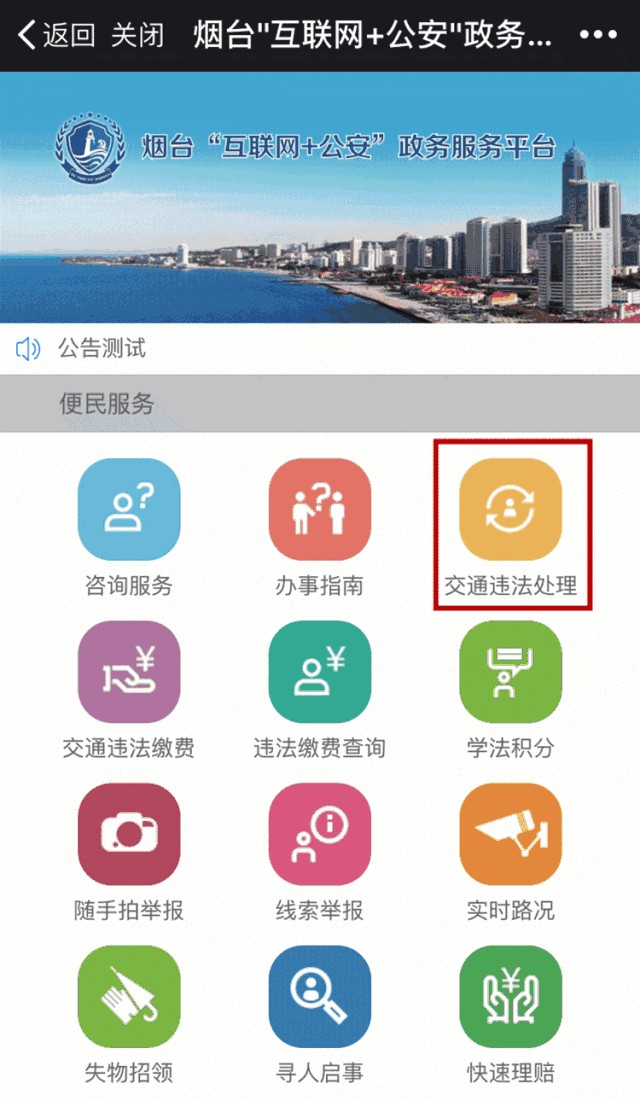 点击【烟台公安】微信底部菜单【微警务】→【交通违法处理】,就可以添加车辆啦~