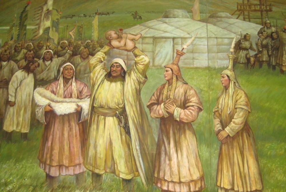 成吉思汗于1162年出生在今蒙古的奥农河畔。他的出生名字叫铁木真,在蒙古语中意为 "铁匠"。他是其父亲耶苏盖的第二个儿子,耶苏盖是基雅德部落的首领。铁木真九岁时,他的父亲被敌对部落的鞑靼人毒死了。这一事件标志着铁木真开始了动荡不安的、经常是暴力的成长过程。