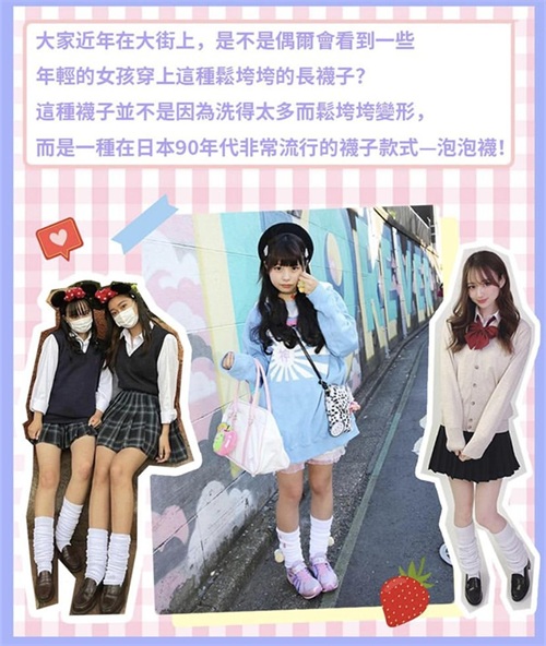 这让人想到,一些女生明明脚趾头都已经磨破了,仍然是要贴上创可贴坚持穿高跟鞋的事情,可以说女孩子为了爱美有的时候真的也是挺不容易的。而泡泡袜的流行基本上是从日本上个世纪90年代开始的。