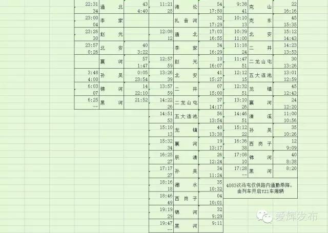 黑河到齐齐哈尔普快4084次列车08:20始发不变;由原19:54到达改为20:11到达齐齐哈尔站,中间停站时刻均有变动。