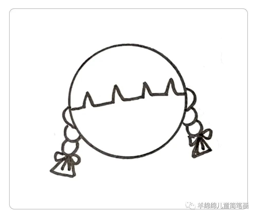 step 2:画齐刘海儿和麻花辫